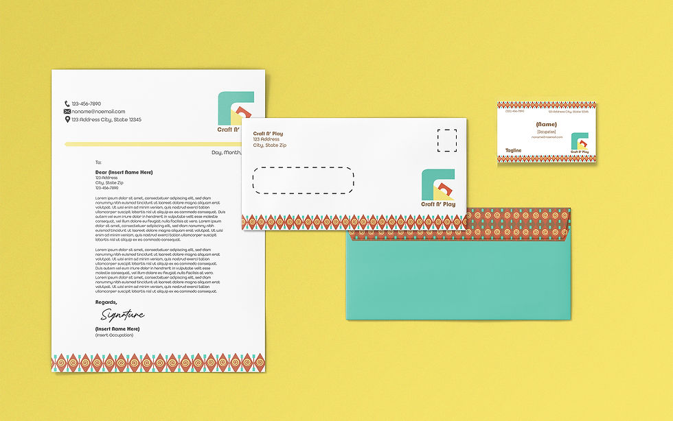 Developing Craft N’ Play’s media assets reflect a deep commitment to branding strategies that resonate with children and parents alike. A vibrant letterhead package uses bright, cheerful colors, enhancing this appeal, and capturing children’s attention to convey a sense of fun and creativity. Boyd’s (2019) analysis of letterhead designs illuminated the role of cohesive visual communication, shaping the clean yet dynamic patterns in the stationery. The examples showcased how subtle design details, typography, and color could elevate a letterhead's impact. These ideas informed the balance of professionalism and vibrancy in Craft N’ Play's letterhead.